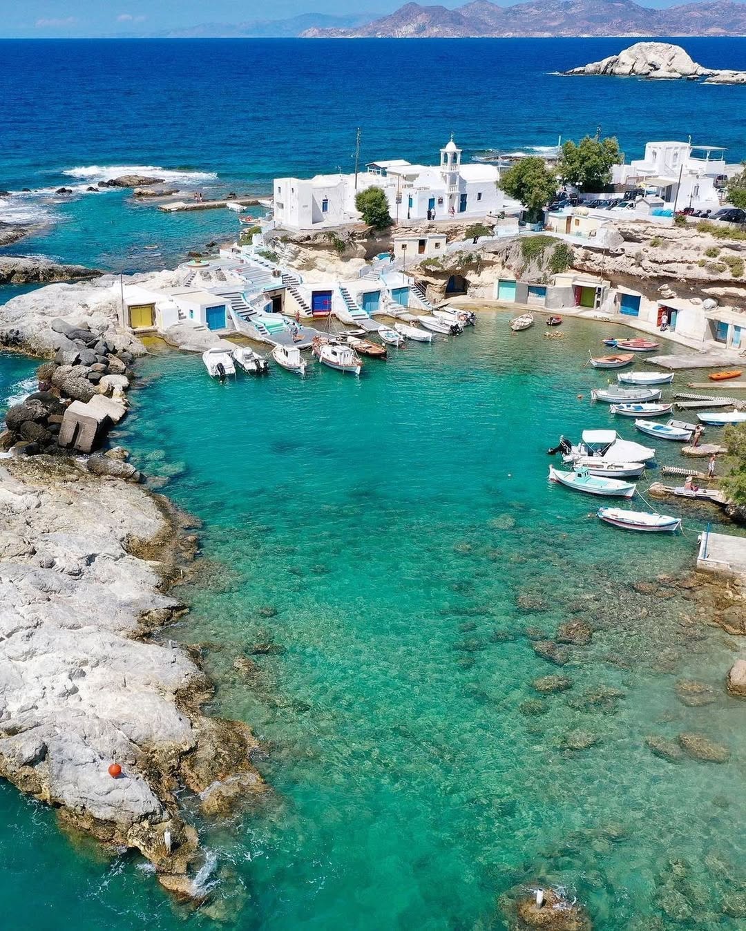 Sarakiniko Beach looks like the moon, smooth white rocks, turquoise waters, and all. You’ll also find colorful fishing villages like Klima, where boat garages are painted in rainbow hues right on the water.